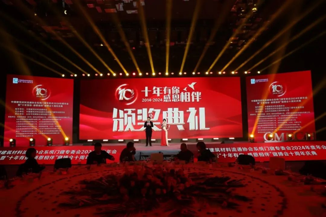 2024年12月23日晚,中国建筑材料流通协会系统门窗专委会2024年度年会暨“十年有你,感恩相伴”窗博会十周年庆典在山东华建大酒店隆重举办。作为行业的年度盛事,此次活动汇聚了系统门窗专委会会员单位、门窗行业上下游企业家代表、政府领导及行业专家学者,共同探讨行业焦点问题,为门窗产业贯彻新发展理念、实现高质量发展凝聚智慧与力量。