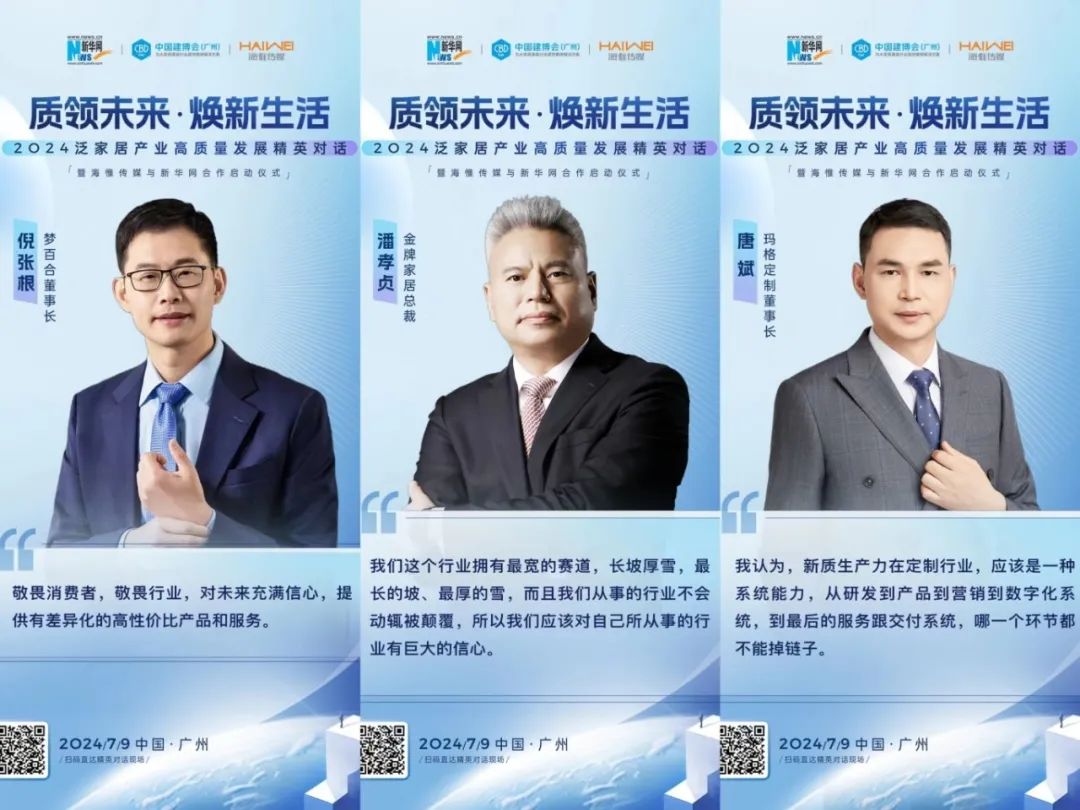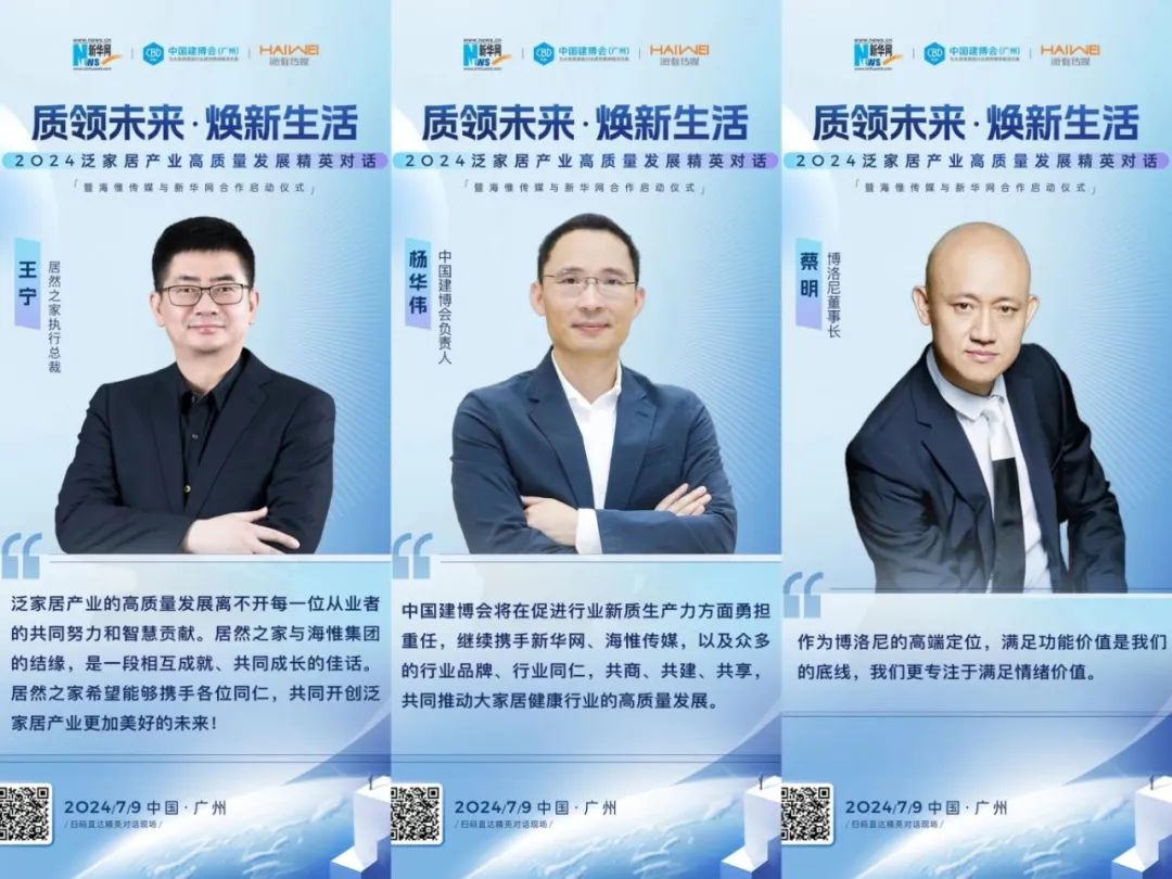会上,新华网、中国建博会、海惟传媒有关领导、行业协会商会、知名企业家等超百位代表齐聚一堂,围绕泛家居行业前沿趋势、家居行业智能制造、数字化、高端化先进技术、新质生产力助推家居行业结构与发展升级等内容,共同探讨产业高质量发展有效路径。