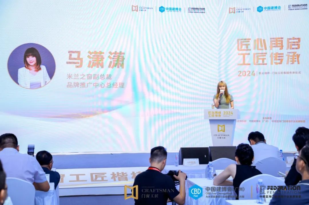 今天的传承仪式,不仅是对过去成就的肯定,更是对未来的展望。我们要将工匠精神一代代传承下去,让更多的年轻人了解并参与到门窗行业中来。我们要通过不断创新和努力,将“中国制造”打造成科技、品质和全球竞争力的象征。在此,我谨代表中国建筑材料流通协会系统门窗专业委员会和米兰之窗,向所有为门窗行业发展做出贡献的工匠们致以崇高的敬意!同时,也希望我们的“窗二代”们能够不忘初心,继续发扬工匠精神,为门窗行业的发展贡献自己的智慧和力量。