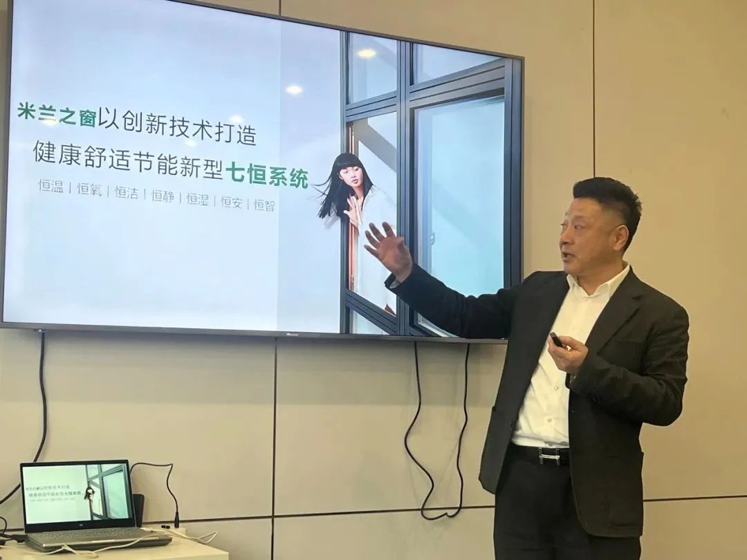 米兰之窗集团董事长马俊清正在介绍七恒系统
