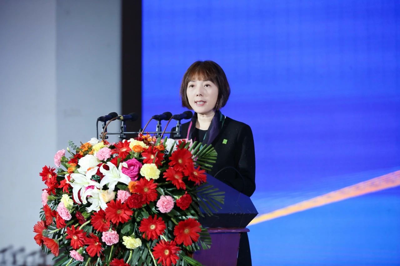 中国建材流通协会系统门窗专业委员会常务副主席兼秘书长、华建集团常务副总裁丁三莲做工作报告