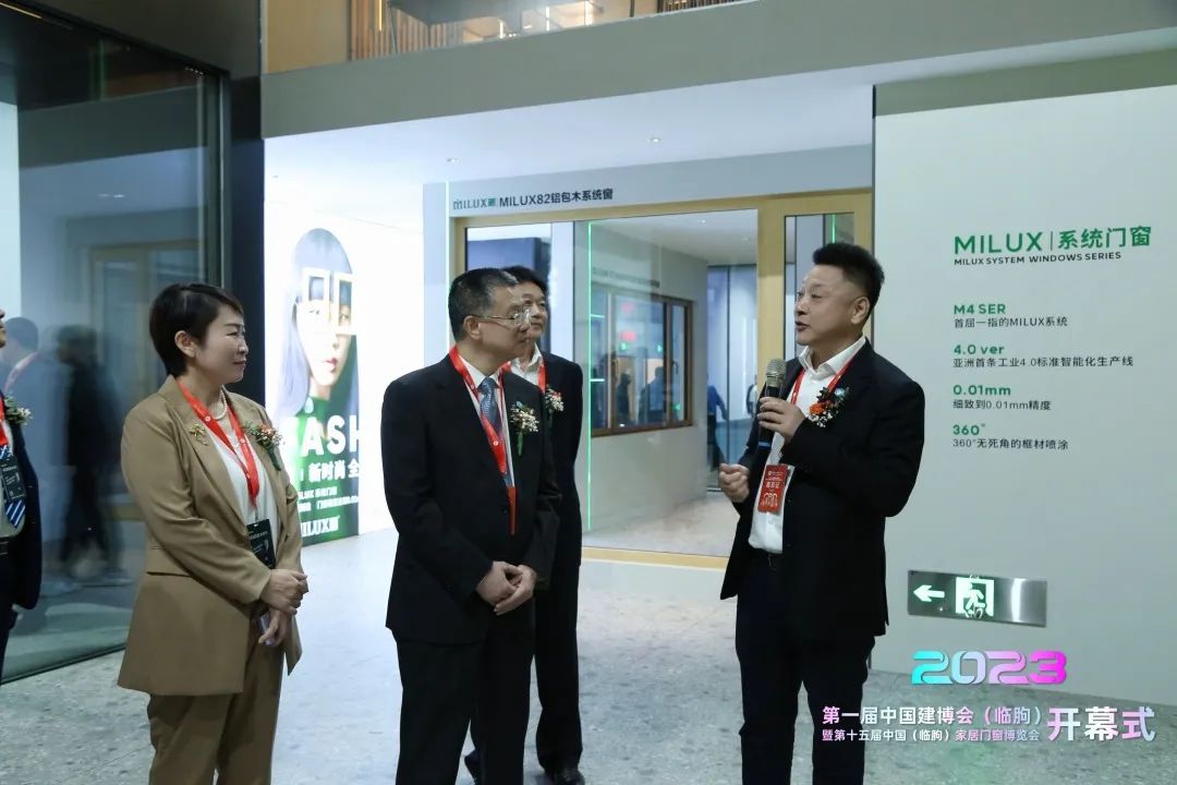 中国有色金属工业协会党委副书记、中国有色金属加工工业协会理事长范顺科,中国建筑材料流通协会会长秦占学,住建部康居认证中心总经理马伊硕,中国对外贸易广州展览总公司副总经理陈旺辉,全国工商联家具装饰业商会秘书长张仁江,中国建筑金属结构协会铝门窗幕墙分会会长李福臣,江苏省门窗行业协会会长许顺友,山东省住建厅二级巡视员殷涛,潍坊市住建局局长马冰,临朐县委书记刘艳芳,临朐县委副书记、县长陈诚,中国有色金属加工工业协会副理事长、中国建筑材料流通协会执行会长、华建铝业集团董事长吴维光等领导莅临米兰之窗参观指导。