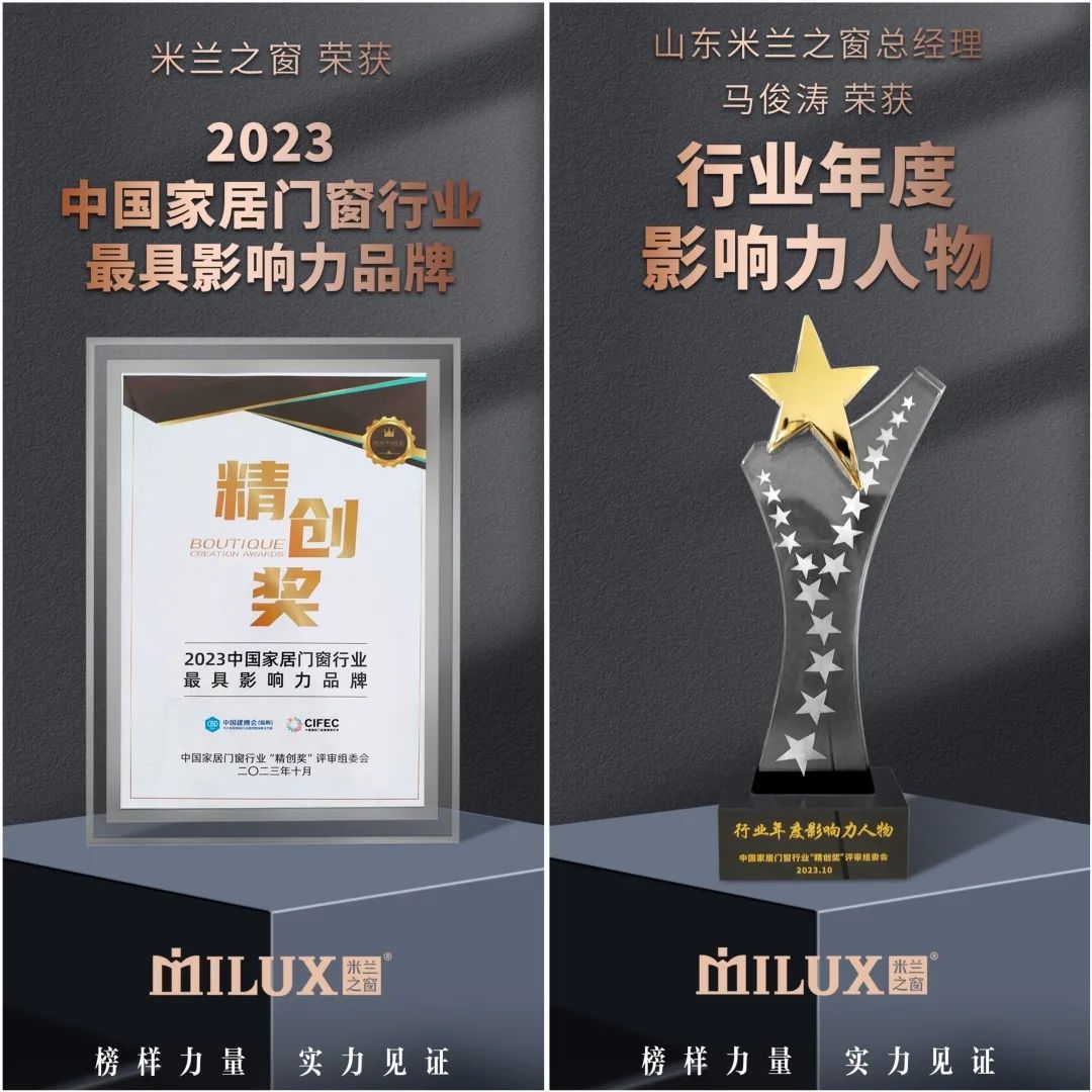 本次评选活动得到行业内的高度关注和热情参与,百余家行业上下游企业踊跃参与,在短短15天的时间里,活动访问量达到519万人次,累计有效票数达到60万票。米兰之窗凭借卓越的创新力与行业影响力荣膺“2023年度最具影响力品牌”奖项,山东米兰之窗总经理马俊涛荣膺“2023年度门窗行业影响力人物”称号。