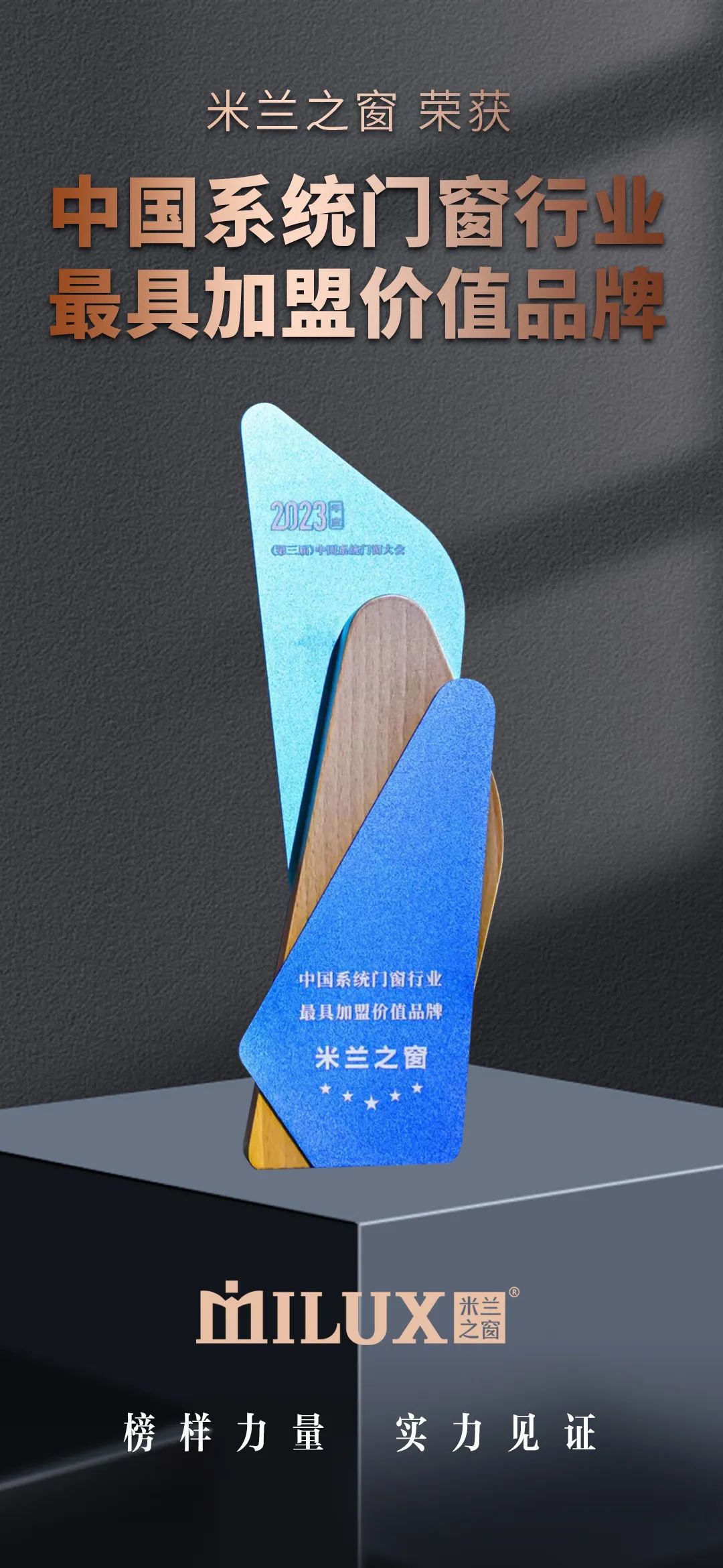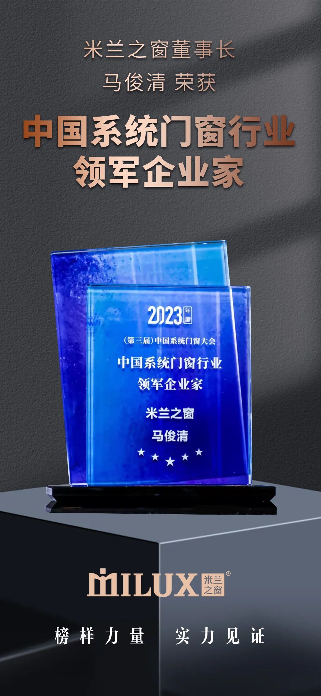 米兰之窗凭借品牌力与创新力从众多门窗品牌中脱颖胜出,接连斩获“中国系统门窗行业最具加盟价值品牌奖”、“中国系统门窗行业品牌TOP30”两项大奖,米兰之窗董事长马俊清荣获“中国系统门窗行业领军企业家”称号。