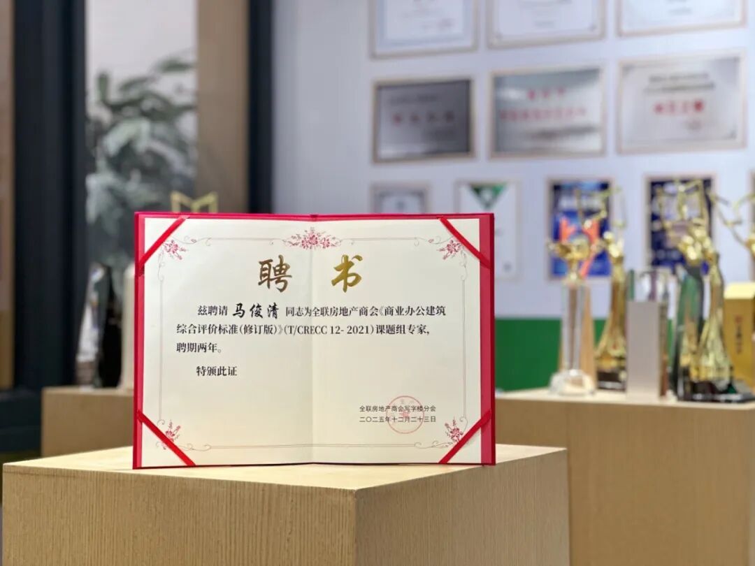 标准是引领行业高质量发展的基石。年会上,一个重要议程备受瞩目——《商业办公建筑综合评价标准(修订版)》课题组专家聘任仪式。马俊清董事长凭借其在建筑门窗领域的深厚积淀与对商业地产行业的卓越洞察,荣聘为课题组专家。这份聘书不仅是对马俊清董事长个人专业实力的高度认可,更是对米兰之窗在推动建筑品质升级与标准化进程中所做贡献的权威肯定。