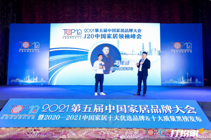 在2021第五届中国家居品牌大会“J20中国家居领袖峰会”上,北京商报家居事业部主任吴厚斌提问米兰之窗董事长马俊清