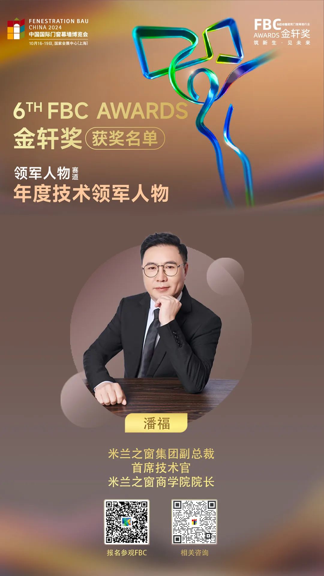 技术创新是米兰之窗持续领跑的核心动力,此次荣获“年度技术领军人物”奖项,是对潘福在技术领域多年来耕耘和突破的充分肯定。他带领的技术团队,专注于提升门窗关键性能,研发了多款具备卓越性能的门窗产品,赢得了市场和用户的高度认可。他在国家标准、行业标准的制定与推广中发挥了重要作用,推动了中国门窗行业整体技术水平的提升。